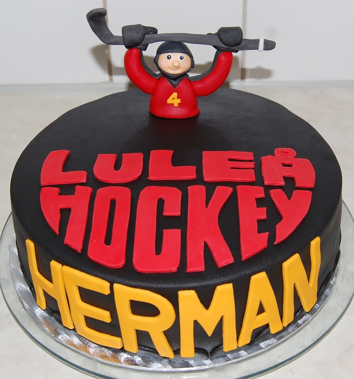 När Herman fyllde år fick han ju självklart önska sig valfri tårta. Det blev en Luleå hockey-tårta. Eftersom att Herman fyllde 4 år så fick det bli nr 4 på tröjan. Väldig passande, kalasdagen till ära var dagen när Luleå hockey hissade tröjan i taket och nr 4 pensionerades.